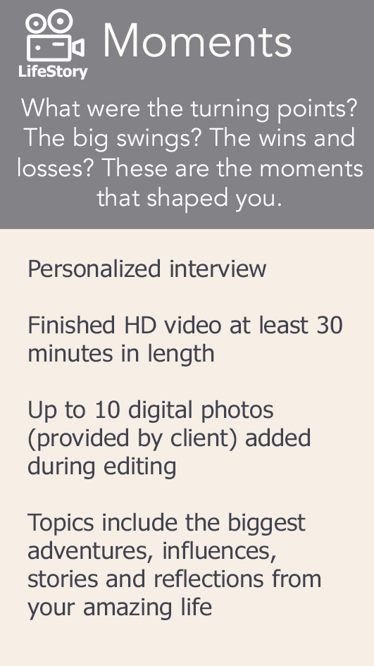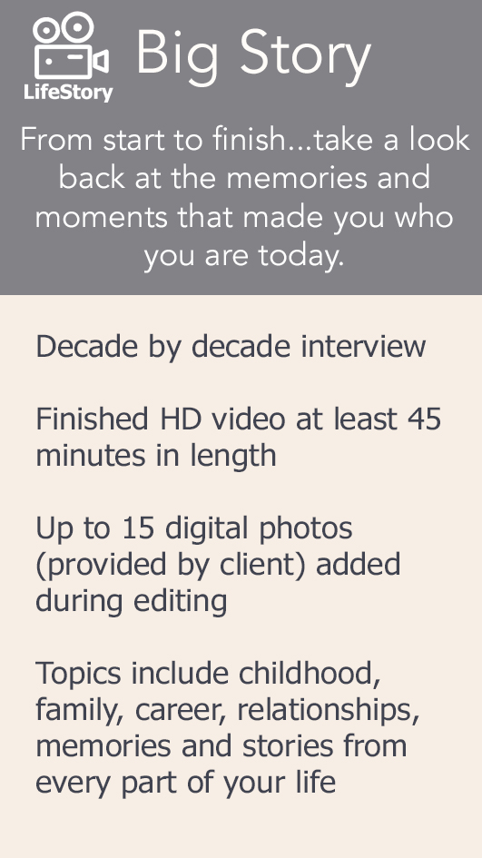 Contact US to Book your life story video shoot, or to purchase a package for someone else.